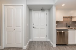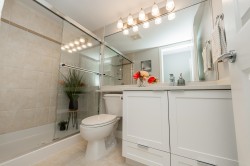 BEAUTIFULLY RENOVATED Port Moody condo in the sought-after Belcarra at Newport Village! This 2 bedroom, 2 bathroom CORNER UNIT overlooks a peaceful courtyard and features a spacious, open layout. The completely redone timeless kitchen offers shaker-style floor-to-ceiling cabinetry, an island, and quartz counters. The living room includes a cozy gas fireplace, and opens to a private, covered, south-facing balcony with serene courtyard views. Bedrooms are generously sized and separated for privacy. The primary fits a king bed, and features a walk-in closet and 3-piece ensuite. Updates include kitchen, bathrooms, flooring, lighting, doors, baseboards, and fireplace surround. Comes with 2 parking and a locker. Steps away from shops, Rec Centre, SkyTrain, Brewery Row, and Rocky Point Park.
