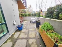 Welcome to 50 Electronic Ave! At 939SF with 9-foot ceilings, this 2-bed 2-bath home really feels spacious. 300SF private patio. Modern finishings & top of the line appliance package. Large primary bedroom features a walk-in closet & spa-like ensuite. Steps from Club 50, a 9000SF clubhouse over 3 levels including resort-style amenities such as a sky lounge, 24-hour fitness centre, yoga room, board rooms, kids play area, theatre room, bike repair, dog wash station & guest suite. This home comes with a full-size parking stall & two storage lockers! Located just steps from Rocky Point, Brewers Row, Skytrain, WC Express & many trails & parks. Commercial space below features an Urgent & Primary Care Centre, Elmo Baking, Mama Said Pizza and The One Sixty Cafe & Wine Bar!