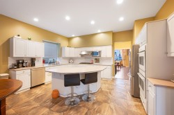Beautiful 4,400 sqft home on a quiet no-through street, offering quality finishings throughout. High ceilings in the living room and a spacious kitchen with maple cabinets, large island, and upgraded stainless-steel appliances (2022). Main and upper floors were updated with laminate and tile in 2015, and LED lighting throughout the home was upgraded in 2017. Recent updates include a new heat pump and hot water tank (2023). Upstairs features four generous bedrooms including a large primary with walk-in closet and 5-piece ensuite. Fully finished basement with separate entrance, recreation room, and two bedrooms. Private backyard with interlocking brick patio. Excellent location, within walking distance to both elementary and secondary schools. Open house Dec 20 Sat 2-4PM.