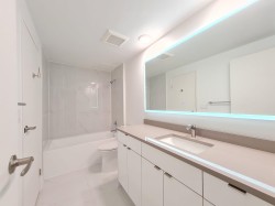 METICULOUSLY UPDATED, 1-bedroom & Den unit located in the heart of Richmond! This generously sized residence is ideally situated just steps from RICHMOND CENTER and surrounded by many dining options. Inside, discover sleek laminate flooring complemented by elegant large-format tiles in the bathroom. HUGE outdoor balcony! The kitchen boasts stainless steel appliances, soft-closing cabinet doors, and quartz countertops, offering both style and functionality. The maintenance fee covers heat and hot water, providing added value. Includes 1 parking and 1 storage locker!