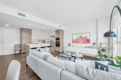 Enjoy PENTHOUSE & WATERFRONT living in this luxury condo steps from Marina and Capstan SkyTrain! LIKE-NEW condition 2BED+FLEX boasts 9" high ceilings, expansive windows, and gorgeous views of Fraser River and North Shore Mountains. Functional layout features A/C, spacious bedrooms, spa-like bathrooms, flex, engineered hardwood floors. Gourmet kitchen equipped with Miele S/S full-size appliances, Quartz countertops, and a large island with ample storage. Balcony enhanced with deck tiles. Added benefit of low utility costs and under 2-5-10 warranty. World-class amenities include pool, hot tub, sauna, steam, gym, party, study, games, and music rooms, BBQ area, playground, and more. Effortless lifestyle with transit, malls, groceries, restaurants, services, and entertainment all within reach!