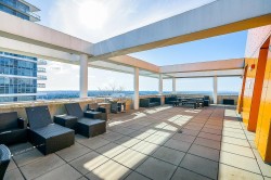 THIS HOME OFFERS A VERY FUNCTIONAL 1-BEDROOM PLUS DEN WITH SLIDING WALL SYSTEM LOCATED IN DOWNTOWN SURREY. FEATURES QUARTZ COUNTERTOPS, STAINLESS APPLIANCES. GREAT SOUTHERN VIEWS ON YOUR 13' X 6' DECK. COMPLETE WITH GORGEOUS ROOF TOP DECK AND BBQ AREA, LOUNGE PARTY/ROOM. WAVE FEATURES CUTTING-EDGE ARCHITECTURE, WITH EACH FLOOR CURVED DIFFERENTLY THAN THE ONE IMMEDIATELY ABOVE OR BELOW IT, IMPARTING A GRACEFUL WAVE SHAPE TO THE ENTIRE BUILDING. CONVENIENTLY LOCATED IN SURREY DOWNTOWN, CLOSE TO SKYTRAIN SURREY CENTRAL SHOPPING MALL, SFU CAMPUS, KWANTLEN, HOLLAND PARK, AND THE LIBRARY.