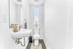 Welcome to Kings Landing by Dawson + Sawyer! Nestled in the Bear Creek area, close to shopping, amenities, and restaurants. This 4 Bed 4 bath townhome plan features a fenced and gated front yard with bedroom and full bathroom on the ground level. FRESHLY PAINTED HOME & SMART THERMOSTAT. BONUS: upgraded FRIDGE with filtered water and ice. Large living room and over height ceilings, house sized kitchen with an island and dining room on the main level with built-in cabinetry. Primary bedroom is large enough for a king sized bed, big closet and private spa-like ensuite with double sinks. Side by side double garage parking with EV charger pre-wire. Faces the greenbelt! Pets and rentals allowed! Book for Private Viewing!