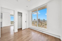 Experience elevated living in this modern 2-bedroom, 2-bathroom condo at Georgetown One by Anthem, built in 2022. Located on the 28th floor, this home offers stunning northwest views of the city and mountains from a large private balcony. The open-concept kitchen features a sleek L-shaped design with premium Bosch and Blomberg appliances. Smart layout with bedrooms on opposite sides for enhanced privacy. Enjoy unbeatable access to Surrey City Centre amenities—just steps to shopping, dining, SFU, KPU, and the SkyTrain. Residents have access to premium amenities including a lounge, outdoor theatre, co-working and study areas, fitness centre, yoga studio, and a pet park. Pets and rentals welcome. Perfect for urban living or investment!