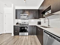 Welcome to Kings Landing by Dawson + Sawyer. Built in 2020 and move-in ready, this bright and spacious 2-bedroom, 2-bath + den (can be used as a third bedroom) + 2 parking unit is located in the rapidly growing Bear Creek neighborhood. The luxurious primary suite includes elegant quartz finishes and a generous walk-in closet. Additional highlights include a covered balcony and an oversized storage locker for your convenience. Situated just minutes from the future UBC Campus, SFU Surrey, SkyTrain station, parks and shopping, this home offers unbeatable location and lifestyle. A fantastic opportunity for first-time homebuyers or savvy investors!
