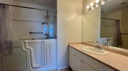 Experience the best of White Rock in this renovated, top-floor corner unit bathed in natural light from over abundance of windows in this Southwynd Bosa built condo. Bright and spacious 2-bedroom, 2-bathroom home boasts concrete construction for superior soundproofing. Inside, find an updated interior ... European style kitchen features quartz counters, tile backsplash & newer appliances. Bathroom offers newer walk-in bathtub, shower. Enjoy spacious laundry room and a cozy gas fireplace in the living area. This wheelchair accessible unit has elevator access, includes under-building parking, and storage locker. Prime location walking distance to shopping, banks, medical facilities & recreation.