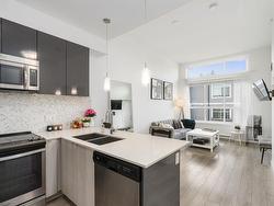 Welcome to YALE BLOC! This beautiful 2 bed 2 bath west facing PENTHOUSE offers 9’ ceilings and an open concept layout perfect for modern living. The kitchen features quartz countertops, stainless steel appliances, two-tone soft-close cabinets, a breakfast bar, and stylish pendant lighting. Enjoy your PRIVATE COURTYARD facing balcony, while the spacious primary bedroom includes a walk in closet and a sleek ensuite with frameless glass shower. Laminate flooring throughout adds durability and ease. Centrally located steps from Willowbrook Mall, restaurants, parks, schools, the future SkyTrain and much more. Perfect for FIRST TIME HOME BUYERS or INVESTORS! Book your private showing today!