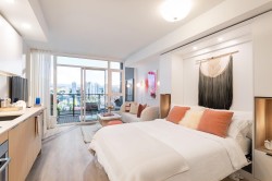 Georgetown 2 by Anthem - the 2nd phase in Surrey City Centre's largest Master Planned community. Located steps from Surrey Central SkyTrain station, SFU, KPU, the future UBC Campus, shop, restaurants & services. Georgetown is in the centre of it all. At completion, Georgetown 2 will feature nearly 18,000 SQFT of indoor & outdoor amenity space including a gym, social lounge, games room, community garden, outdoor lounge & BBQ area. This bright South-facing Studio Ala plan features premium 24" integrated appliances, durable quartz countertops, and includes a Queen-sized Murphy bed. An energy efficient heat pump offers heating and cooling for year-round comfort. Anthem Homeownership Accelerator is designed to help you buy sooner, smarter & with confidence. Ask our Sales Team how it can work.