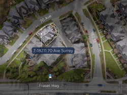 Augusta Walk at the top of Provinceton!! Bright & spacious 1,340 sqft townhome has 3 bedroom & 2 bathrooms up plus a powder room on the main floor. Fairly new paint & flooring, hot water tank (2022). Home features wide plank dark laminate flooring, granite countertops, stainless steel appliances, 9ft ceilings, built in vacuum plus more. Bright wide-open concept on main floor with large family room. Great location in Provinceton with easy access to highway and close to schools. Walking distance to proposed new skytrain coming down Fraser Hwy!!