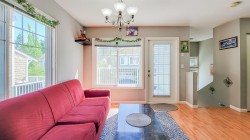 Seneca Woods! This bright and spacious END UNIT townhome offers 3 bedrooms, 3 bathrooms, and 1,879 sqft of thoughtfully designed living space. The modern kitchen features granite countertops, a center island with storage, and a pantry — ideal for everyday living and entertaining. Relax in the cozy living room with an electric fireplace, or step out to the deck and patio areas surrounded by green space. Main floor includes a powder room for guests. Upstairs boasts a primary bedroom with walk-in closet and ensuite, plus two generous bedrooms. The finished basement includes a large rec room with bar area, laundry, and ample storage. Complete with a single garage, driveway pad, and plenty of street parking, this home is in a family-friendly. Showing by appointment only. Easy to show.
