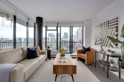 Welcome to 66 West Cordova by Westbank, a boutique, worry-free concrete building in the heart of Gastown. This bright 2-bedroom, 2-bath corner home features a stunning custom kitchen renovation with premium upgrades throughout. Enjoy SE-facing floor-to-ceiling windows, abundant natural light, and cityscape views from your wrap-around covered balcony. Strata fees include heat and hot water, with easy in-suite laundry hookup and rental parking available. The building offers a rooftop patio with panoramic water, mountain, and city views, plus a gym, BBQ area, and party room. Pets and rentals (min 30 days) allowed, steps from cafés, markets, and transit in vibrant Gastown.