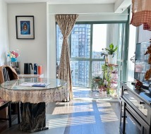 Discover this 2 Bed 2 Bath outstanding corner unit, showcasing panoramic views of the city, mountains, and False Creek. Located in the heart of downtown, 2 South East facing solarium, one can be a den! New counter top / sink in the kitchen and new paint. This unit offers a well-designed, space-efficient layout with no wasted space. Building with amenities like a pool, jacuzzi, sauna, gym and private garden, also steps away from a wide selection of restaurants, shops, and transits. Very well kept unit, building is also well maintained, come check out yourself. This property is ideal for first-time buyers or keen investors.