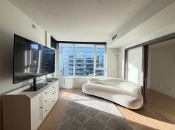 the rate will return to $3,100 on April 1, 2026. The $2,700 rate is our special winter discount. Consider it our little Black Friday deal! Discover the perfect blend of elegance and convenience in this furnished condo located in the heart of Vancouver. This one-bedroom, one-bathroom residence offers 510 square feet of stylish living space, ideal for those who desire a sophisticated urban lifestyle. The condo is equipped with air conditioning, ensuring a comfortable environment throughout the year. High ceilings and hardwood flooring create a spacious and warm atmosphere, while the south-facing orientation floods the space with natural light, highlighting the stunning views.