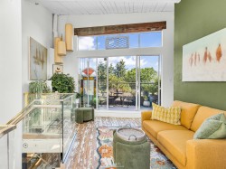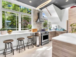 Rarely available, this distinctive 2 bed, 2 bath + office + sunroom townhome in Gastown is a true character residence — a 1993 heritage conversion of a 1926 warehouse blending industrial charm with modern sophistication. Spanning five levels, this urban loft-style townhome features original hardwood floors, exposed brick and concrete, an updated kitchen, skylight, gas fireplace, and rooftop decks with panoramic mountain, ocean, and city views. Thoughtfully maintained with new patio doors and paint (2025), resurfaced floors (2024), glass railings (2021), boiler (2019), kitchen (2018), and more. Ample storage, pet and rental friendly. Ideally located on one of Gastown’s most sought-after blocks, steps from cafés, restaurants, and boutiques.
