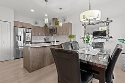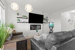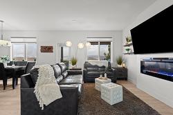 This incredible home is waiting for you! Location is key with the one, as it is the best spot in the Complex, located at the far end with just 1 neighbour. This home offers plenty of natural daylight, 2 covered patios and an incredible floor plan spanning 3 levels. The upper level offers 2 spacious bedrooms, laundry room and a full bathrooms, in addition to an oversized primary bedroom (with lake views!), large walk in closet and stunning ensuite. On the main, you will find a huge entertainers kitchen with stone counters and loads of storage and work space, dining room and spacious living room as well as a powder room. Curl up on the couch in front of the electric fireplace, or enjoy the city views from the large patio, your call! The garage is extra deep, room for 1 vehicle but offering loads of extra storage space for all your extra toys! Downstairs, you will find a recently finished rec space that currently operates as an incredible home gym! This gorgeous space could be great for guests with a private deck, full bathroom and lots of space to create that 4th bedroom if needed! This home is meticulously maintained and offers loads of "extras" from the Developer spec, be sure to check this one out!