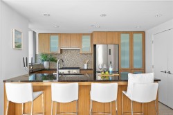 City, mountain, and harbour views await from this stunning 2-bed, 2-bath condo at The Sovereign in the heart of downtown Victoria. With nearly 1,000 sq ft, this home offers luxury, functionality and an unbeatable location, just steps from the Inner Harbour, shops, restaurants, and cultural landmarks. The bright, open layout features a balcony, office nook, and a gourmet kitchen with stainless steel appliances, gas range, stone counters, and a peninsula for four. The primary suite has a walk-in closet and a 4-piece ensuite with heated floors and a soaker tub. A second full bath includes a large walk-in shower. Enjoy comfort year-round with air conditioning and perimeter hot water radiant heat. Residents enjoy premium amenities, including a guest suite and a 12th-floor rooftop terrace with heaters, a gas BBQ, fireplace, and panoramic harbour views. Includes secure underground parking, storage locker, and bike storage. Heat, A/C, hot water, and gas are all included. Pets welcome!