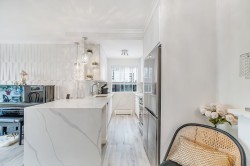 Enjoy all the amenities this great location has to offer with this completely renovated (in 2023), southwest-facing, 1,081 sq ft corner suite featuring 3 bedrooms and 2 bathrooms. Enter through an elegant foyer with a built-in closet and storage area, complete with a Miele washer and dryer. The sun-filled living room connects to a kitchen equipped with brand-new appliances, featuring a white countertop and breakfast bar. Relax on the large, private, covered balcony. The beautifully appointed roof deck offers stunning ocean and city views. This gorgeous suite is just steps away from all of Ambleside's restaurants, shops, top-ranked schools, and amenities. Enjoy an amazing lifestyle in West Vancouver! Pets and Rental are allowed with restrictions.
