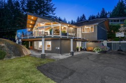 Poised on a dramatic granite foundation, this updated West Coast contemporary home offers sweeping views of Mt. Baker, downtown & Stanley Park. Vaulted ceilings, expansive windows & a massive wraparound deck create a stunning connection to natural light & landscape, while the peaceful interior provides calm, quiet living. The reverse plan design features spacious living & family rooms, both with fireplaces, plus an inviting kitchen & dining area overlooking the view. The serene primary bedroom includes a private deck, walk-in closet & relaxing ensuite. An ideal layout for multi-generational living or optional suite. Located in the sought-after Rockridge & Caulfeild catchments just minutes to Caulfeild Village & the best of West Coast trails. A stylish, move-in ready view home.