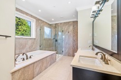 Nestled at the end of a quiet cul-de-sac, this executive residence offers over 6,100 sq. ft. of luxurious living across three levels. Designed with 8 bedrooms and 8 bathrooms, it features a grand double-height foyer, entertainment-sized living room, and a gourmet kitchen with granite counters, premium appliances, and a wok kitchen. The main level includes a guest ensuite, while upstairs offers four bedrooms including a spa-inspired primary suite with walk-in closet. The lower level, with separate entrance, provides 3 bedrooms, 3 bathrooms, a full kitchen, and recreation room—ideal for multi-generational living. Situated on a 13,800 sq. ft. lot with private terraces and a triple-car garage, this home is walking distance to top schools and shopping.