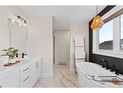 //SIDE ENTRANCE//IN-LAW POTENTIAL//FULLY FINSISHED// Discover this 2,270 sq. ft. home, thoughtfully designed for both entertaining and family living. The main floor offers a bright, open layout featuring a spacious kitchen, dining area, and living room complete with a custom fireplace. A convenient powder room and access to the covered deck make this level both functional and inviting.Upstairs, retreat to the primary suite, which boasts a walk-in closet and a luxurious ensuite with double sinks, a soaker bathtub, and a separate shower. Two additional bedrooms, another full bath, a laundry room, and plenty of closet space complete the upper level.The finished basement extends your living space with a large family room and bar area, a full bath, a utility room, storage, and a separate entrance—perfect for guests or additional living flexibility.This home comes fully equipped with modern upgrades including landscaping, a paved driveway, heat pump, mini-splits for cost efficiency, and coverage under the Lux Residential Warranty Program. To top it off, the property backs onto a tree belt, offering added privacy and a serene setting.