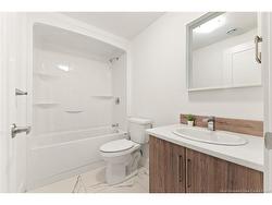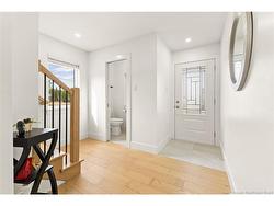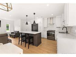 *** 310 Ripplewood NORTH RD *** MODERN CORNER UNIT//2 MINI-SPLIT//TREED BACKYARD//Welcome to this exceptional corner unit townhouse, a true gem in Moncton's desirable Grove Hamlet subdivision. This home, built in 2022, offers a perfect blend of modern style and functional living. The main level features an inviting open-concept layout, where a spacious kitchen with a central island and beautiful countertops flows seamlessly into the dining and living areas. The living room is anchored by a cozy fireplace accent wall, creating a warm atmosphere for family gatherings and entertaining. From the dining area, patio doors lead to a private deck, offering a quiet retreat for outdoor enjoyment. A convenient powder room and closet complete this level. Upstairs, you'll find a luxurious primary suite, a true sanctuary with a generous walk-in closet and a spa-like ensuite bathroom. Two additional well-sized bedrooms and a full bathroom provide plenty of space, while the dedicated laundry closet adds convenience. The fully finished basement significantly expands the living space, offering a versatile family area perfect for movie nights or a home gym. It also includes an additional full bathroom, bringing the total to four bathrooms and three bedrooms throughout the home. This thoughtfully designed townhouse is ready for you to move in and enjoy! Don't miss your chance to own this beautifully built home in one of Moncton's most desirable communities!
