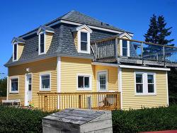 Blue Rocks—a stunning coastal retreat nestled along Nova Scotia's rugged shoreline, offering panoramic views that will leave you in awe. This world-renowned location provides the rare chance to spot the iconic Bluenose II as it sails by, adding a touch of maritime charm to your daily life. Originally constructed in 1890, this architectural gem underwent an extensive restoration, completed in 2018, ensuring modern comforts while preserving its historic allure. Updates include new insulation, windows, a re-shingled roof, siding, wiring, PEX plumbing, and a brand-new septic system, making this a move-in-ready masterpiece. Heat pump on the main level. As you step inside, you're immediately greeted by an abundance of natural light and expansive views. The open-concept main floor is perfect for entertaining, with a spacious kitchen featuring a custom backsplash by local artist Rick Silas, a separate dining area, and a cozy living room with a reading nook. The main level also includes a laundry area, a half bath, and a convenient storage closet beneath the stairs. An elegant oak staircase leads to the second floor, where you'll find two well-appointed bedrooms, each with its own private full bath. An inside & outside entrance to the upper level leads up to a breathtaking two-tiered patio—where the views are truly unparalleled. Located just 6 minutes from the UNESCO World Heritage Town of Lunenburg, you’ll have easy access to unique shops, restaurants, cafes, hotels, and a golf course, all boasting stunning vistas. For outdoor enthusiasts, there’s a perfect spot nearby to launch a kayak and explore the serene coastline.Towns of Mahone Bay & Bridgewater all within 20 mins and one hour away from the city of Halifax.