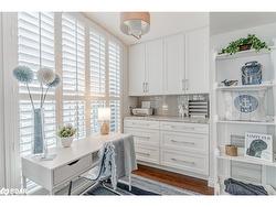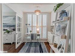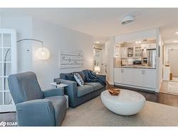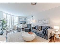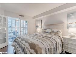 STYLISHLY RENOVATED 1 BED + DEN CONDO WITH STUNNING VIEWS OF KEMPENFELT BAY, MODERN UPGRADES & PREMIUM AMENITIES! Enjoy breathtaking water views the moment you walk in at this beautifully renovated condo in the renowned Bayshore Landing, where modern comfort meets the serenity of Kempenfelt Bay and the vibrance of downtown Barrie. Natural light pours through oversized corner windows, illuminating a bright open-concept layout designed for both relaxation and entertaining. The contemporary kitchen showcases sleek cabinetry, built-in appliances, and custom pull-outs, opening effortlessly into the spacious living and dining areas where expansive water views set a stunning backdrop. The inviting bedroom features a custom closet by Closets by Design, while the versatile den provides an ideal spot for a home office or reading nook. A stylishly updated 4-piece bathroom boasts refined finishes, premium fixtures, and a Toto toilet, with a convenient laundry room featuring a full-size washer and dryer. Every corner exudes thoughtful design with smooth ceilings, freshly painted walls, upgraded lighting with dimmers, modern doors and hardware, California shutters, and custom built-ins that add function and flair. Step beyond your suite to enjoy resort-style amenities, including concierge and security, an indoor pool, sauna, fitness and games rooms, party and recreation spaces, guest suites, and an on-site car wash. Perfectly positioned in the heart of the City Centre, this residence places you just steps from vibrant restaurants, cafes, boutiques, event spaces, beaches, and lakeside trails - offering the best of city living with the serenity of Kempenfelt Bay right outside your window. With a desirable first-level parking space and a spacious private storage locker, this exceptional #HomeToStay combines everyday luxury with the ease of low-maintenance living near Barrie’s sparkling waterfront.