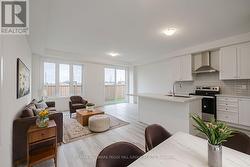 BRAND-NEW END UNIT TOWNHOME WITH MODERN UPGRADES & QUICK CLOSING AVAILABLE! Move right into this stunning brand-new end-unit townhome, part of the highly desirable Ventura South Townhome Collection, offering 1,650 sq ft of beautifully designed living space with 3 bedrooms and 3 bathrooms. Priced to sell and ready for quick closing, this home delivers exceptional value and peace of mind with a 7-year Tarion Warranty. Located near HWY 400, the South Barrie GO Station, walking and cycling trails, top-rated schools, shopping, and dining, with quick access to golf and Friday Harbour Resort offering year-round recreation. Curb appeal impresses with a charming covered front porch and a stylish front door with a frosted glass insert and transom window that fills the entryway with natural light. With no sidewalk in front, enjoy parking for two vehicles in the driveway. Upgraded laminate and tile flooring enhance the main level, laundry room, and bathrooms, offering durability and a modern aesthetic. The open-concept kitchen showcases quartz countertops, white cabinets, a tile backsplash, stainless steel chimney-style range hood, French-door refrigerator, electric range, dishwasher, and a large island with breakfast bar seating for five. The adjacent great room offers a bright, welcoming space with a walkout to the partially fenced backyard featuring wood privacy fencing along the rear and side lot lines and a convenient gate. Completing the main level is a powder room and a laundry room with garage access, a side-by-side Whirlpool washer and dryer, overhead storage cabinets, and a clothing rod. Upstairs highlights upgraded laminate flooring throughout the hall and bedrooms, a 4-piece main bathroom with a quartz-topped vanity, and a primary bedroom with two walk-in closets and a 3-piece ensuite. Central air conditioning, quality upgrades, and modern finishes throughout make this new #HomeToStay a standout choice in one of Barrie's most convenient neighbourhoods! (id:27)