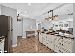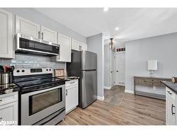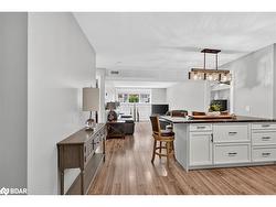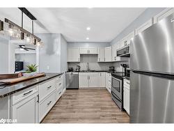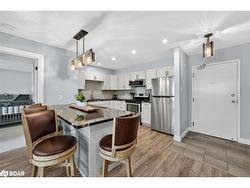 This thoughtfully upgraded 930 sq ft condo is move-in ready and ideal for first-time buyers and seniors. Take advantage of this highly accessible ground-level unit, offering modern-living, a great feature for downsizers, travelers, and anyone with mobility considerations. 1-5 minutes to Georgian College, Royal Victoria Hospital, Hwy 400, shopping, and transit make this suitable for students, healthcare professionals, and commuters alike. Strong tenant demand and proximity to key amenities make this a valuable investment property, with potential to earn $1,900 to $2,100/month. Ideal layout for roommate tenants, boosting ROI. With low-maintenance living, coin laundry, and no stress of outdoor upkeep, this is a perfect alternative to a freehold. Barrie's continued growth and infrastructure investment offer strong potential for long-term appreciation! Inside, enjoy a bright open-concept layout with large windows, newly trimmed hardwood floors & carpeting, fresh paint, brand-new interior doors, and updated lighting. The beautiful modern kitchen features new S/S appliances, granite countertops, a stylish backsplash, and a newly installed island for added dining and prep space.