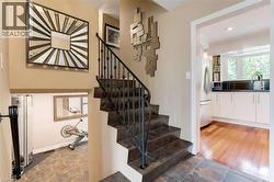 For more info on this property, please click the Brochure button.This detached home is located in South Burlington, in the prestigious community of Roseland. Steps to the waterfront, and minutes from downtown with several sought after schools nearby, as well as multiple parks, community centres, and trails. The home features a spacious family room with a cozy fireplace, and built-in bookshelves on Jatoba (Brazilian Cherry) hardwood floors. The ground floor walkout room is set up as a gym on porcelain tiles, but can be used as a living room or games room. Adjacent to this room there is a 3-piece washroom with heated floor and heated towel rack. Three bedrooms, a 4-piece washroom, and a washer/dryer closet complete the upstairs living space. The spa-like bathroom showcases a shower with body jets and a jacuzzi tub. The fully-finished basement hosts an in-law suite with a separate entrance. This studio apartment includes a kitchen with a standard sized fridge and stove and a 3-piece washroom with washer and dryer. The backyard features a hot tub, outdoor shower and multilevel deck and patio. The custom made shed provides ample storage. This private outdoor oasis is hardscaped throughout, with the right balance of greenery and privacy which can be enjoyed year round. A programmable irrigation system for easy maintenance keeps the individual gardens blooming. The extended driveway provides ample parking for up to 6 cars. Solar panels provide additional income. (id:27)