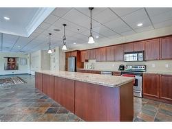 2-bedroom PLUS a den, 2 full bath condo in the heart of downtown Burlington! Over 1300 square feet with a sprawling, open concept floor plan! This unit has been beautifully maintained and is situated in the sought-after Baxter building. The unit boasts an oversized living / dining room with plenty of natural light. There is also access to the large terrace with beautiful eastern exposure. The eat-in kitchen features a large island, white cabinetry and stainless-steel appliances. The primary bedroom has a walk-in closet and a spacious 4-piece ensuite with a separate tub and shower. There is also a spacious 2nd bedroom and 3-piece main bath! The oversized den offers several possibilities and is a great added bonus! This unit also includes in-suite laundry and plenty of storage space! Building amenities include a rooftop terrace with BBQs, a party room, a gym, sauna, & carwash! TWO underground parking spots and TWO storage lockers (one on the same floor as the unit). A perfect unit for anyone looking to get downtown Burlington and all it has to offer!