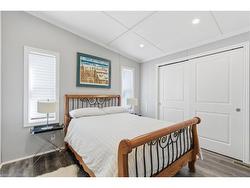 Welcome to 4449 Milburough Line, #28 Ash Street in Burlington — a beautifully maintained 2-bedroom, 2-bathroom home located in the quiet and friendly community of Lost Forest Park. Less than five years old, this modern home features an open-concept layout with an oversized two-tone custom kitchen island, perfect for entertaining. The spacious kitchen offers ample storage, while the separate dining area and built-in electric fireplace create a warm and inviting atmosphere. A dedicated office space provides privacy for work or hobbies, and pot lights throughout add a bright, contemporary touch.Step outside to a stunning Lumon-enclosed 3-season sunroom, perfect for relaxing, hosting guests, or stargazing on clear nights. Lost Forest Park offers peaceful surroundings and a strong sense of community, complete with amenities like an in-ground swimming pool, horseshoe pits, and beautifully landscaped grounds.Whether you’re looking to downsize or simply enjoy a tranquil lifestyle with the convenience of modern updates, this home offers the perfect year-round retreat.