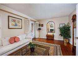 Welcome to Tyandanga — a serene Burlington neighbourhood known for mature trees, green space, wooded ravines, huge parks & the prestigious Tyandaga Golf Course. Nature lovers will appreciate the nearby Niagara Escarpment, Bruce Trail & conservation areas offering endless outdoor adventure. Enjoy this quiet, established community that feels tucked away in nature, yet is close to shopping, restaurants, & services, & offers quick access to the QEW & 407 ETR for commuters. This highly desirable end-unit townhome is part of a small, beautifully maintained enclave of only 34 homes. Set on a premium private lot, it features a rarely offered attached double garage with inside entry, 2 bedrooms, 2.5 bathrooms, extra windows, & approx. 1,629 sq. ft. of light-filled living space plus a professionally finished basement. Hardwood floors on 2 levels, French doors, 2 gas fireplaces, & California shutters contribute to timeless elegance & there is fresh paint in the entrance, kitchen, & 2 bedrooms. The spacious living room, centred around a gas fireplace, opens to a private patio surrounded by lush gardens, brick privacy walls, a mature tree, & metal fencing with a gate access to green space. French doors connect the living & dining room — perfect for formal entertaining. The bright white kitchen offers ample cabinetry, an upper china cabinet, Corian counters, white appliances (including a new stove), & a breakfast area. The family room with a gas fireplace is located on the mid-upper level; 2 bedrooms & 2 full baths are on the upper level. The freshly painted primary suite features large windows with California shutters, a walk-in closet & a 4-piece ensuite with a soaker tub & separate shower. The finished lower level includes a spacious recreation room with pot lights & a large laundry room with extensive cabinetry & a new Maytag washer & dryer.