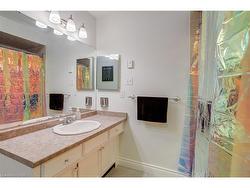 Welcome to your happy place! This beautifully cared-for 3-bedroom townhome (in one of Burlington’s most sought-after complexes!) backs right onto a storybook ravine and babbling creek. Step outside to your massive private deck and soak in the peaceful, forest views — perfect for morning coffee or sunset cocktails. Inside, the main floor is made for entertaining! The updated kitchen sparkles with quartz countertops, sleek modern cabinetry, a GE induction stove, and a Bosch dishwasher. Whip up dinner while chatting with guests in the open-concept dining/living room, then cozy up around the gas fireplace. The family room off the kitchen is a sunlit retreat, with huge windows framing those gorgeous ravine views.Upstairs, the home has been reimagined into 2 spacious bedrooms, each with their own ensuite (but yes — it can be converted back to 3 bedrooms if you prefer!). The primary suite boasts an updated ensuite, a dreamy screened balcony, and plenty of room to unwind. The second bedroom is equally spoiled with a private full bath, and luxury vinyl floors done throughout the 2nd floor (2025).The lower level is another slice of paradise — a bright above-grade bedroom, a rec room with a walk-out to that jaw-dropping deck, plus laundry and storage. Bonus? You get outdoor space on EVERY level — a rare treat!You’ll also enjoy a double-wide driveway, private garage, and a friendly community with an outdoor pool, party room, and snow removal right to your doorstep. Love the outdoors? Kerns Park, golf, and tennis are all within walking distance. Need to commute? You’re minutes from the 403, 407, and QEW. This is more than a home — it’s a lifestyle. Don’t miss your chance to make it yours!