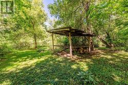 This extraordinary 2,584 sq. ft. bungalow is set on a private 1.87-acre lot, offering a rare combination of space, elegance, and lifestyle. The backyard is a true oasis with an inground pool, hot tub, interlock stone patio, Armour stone accents, and an outdoor kitchen an entertainers dream. A winding trail takes you through the trees to a charming bridge over a creek and a sunlit clearing, perfect for gatherings or quiet escapes. Inside, the home showcases high-end finishes including hardwood and travertine flooring, crown moulding, and a thoughtfully designed open layout. At its heart, the gourmet kitchen features a centre island, granite counters, upgraded cabinetry, stainless steel appliances, and a cozy gas fireplace. Sunlight streams through large windows, with a patio door that opens to the deck overlooking the pool and wooded backdrop. Seamlessly connected to the kitchen, the expansive family and dining area offers vaulted ceilings, floor-to-ceiling windows, and a second gas fireplace. This impressive space is ideal for entertaining while maintaining a warm and inviting feel. The bedroom wing includes three generously sized bedrooms and two updated 4-piece baths, each with luxurious finishes. The lower level adds exceptional versatility with a bright living room and walkout to the pool, an additional bedroom, large rec room, office nook, laundry room, and space for a future kitchenette perfect for an in-law suite or multi-generational living. A rare offering that blends elegance, functionality, and resort-style living, this property is truly a must-see. (id:7525)