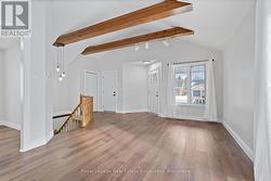 Welcome to 16 Bush Street, a renovated detached bungalow home featuring 3+2 good-sized bedrooms and 2 full renovated bathrooms, making it ideal for families, professionals, or anyone seeking move-in-ready living in a vibrant community. The freshly painted main floor boasts new laminate flooring throughout, a bright open-concept living and dining area with a vaulted ceiling, wood beams, and access to the fully fenced backyard, perfect for entertaining and relaxing. The kitchen has freshly painted cabinetry, pot lights, and a breakfast area. Downstairs, the fully finished basement offers versatile space for a recreation room, home office, gym, or guest suites. With a cozy fireplace, above-grade windows, ample storage, and a laundry area, this home is convenient for everyday living. Enjoy the fully fenced backyard equipped with a garden shed, a playset, and a deck perfect for barbequing. Location is prime, just minutes from downtown Collingwood, offering shops, cafes, restaurants, and cultural venues. Close to parks, walking trails, and recreational facilities, including provincial parks and Wasaga Beach. Easy access to highways and commuter routes for work or travel. Whether you're looking for a family home, a weekend getaway, or an investment property, 16 Bush Street is ready to welcome you! Extras: Freshly painted throughout (2025). New light fixtures (2025). New laminate flooring, trim casing, and baseboard on the main floor (2025). Renovated Main Floor Bathroom (2024). Renovated Basement Bathroom (2023). Laminate Flooring in the Basement (2021). New Garage Door (2025). Furnace (2020). Air Humidifier (2020). Air Conditioning (2021). Sump Pump (2021). Ducts Cleaned and Sanitized (2025). (id:27)