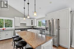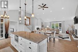 This beautiful 3+1 bedroom family home is ideally located in the sought-after Lockhart subdivision - just steps from local schools, scenic trails, and a short stroll to downtown Collingwood.Set on a spacious 70' x 120' lot, the property offers an incredible outdoor living space featuring a 14' x 21' saltwater pool, relaxing hot tub, full outdoor kitchen, and a dining pergola - perfect for entertaining family and friends.Inside, the main level features an open-concept layout with vaulted ceilings and a freshly repainted kitchen (2025) complete with breakfast island and direct access to the backyard. The lower level includes a welcoming family room with doors to back yard and access to a powder room and convenient walk-out access to the yard and double car garage - an ideal setup for a home office or guest suite. Both these levels feature engineered wood flooring refinished with a stylish gray wash finish.The basement offers additional living space with a rec room featuring a cozy gas fireplace, bedroom, full bathroom, and laundry area.Upstairs, the primary suite includes an updated 4-piece bathroom, while two guest bedrooms share an updated 3-piece bath (roughed-in for laundry). This level and the staircase were recarpeted in 2019.Recent updates include a new furnace and A/C (2015), pool heater (approx. 2019), and fresh paint throughout (Spring 2025). (id:27)