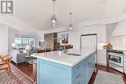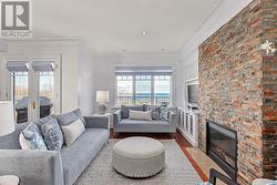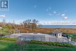 Welcome to luxury waterfront living at Admirals Gate. This rare and coveted bright corner condo offers spectacular, unobstructed views of both Georgian Bay and the escarpment. Set within a quiet and exclusive community, residents enjoy access to a beautifully maintained outdoor pool and manicured grounds, just steps from the water. This 3-bedroom, 3.5-bathroom home is designed for both elegance and functionality. Each bedroom has its own ensuite, plus a convenient main-level powder room. The main floor also features a versatile bedroom/office with built-in cabinetry and closets, complete with ensuite, making it ideal as a main-level primary suite if desired. The newly renovated kitchen boasts quartz countertops, a large island with overhang, a dedicated coffee bar, and seamlessly connects to the dining and living areas. A gas fireplace adds warmth and character, while a walkout opens to a spacious patio overlooking the pool and the Bay perfect for entertaining or quiet relaxation. Upstairs, the expansive primary suite offers a private deck with stunning water views, a luxurious ensuite, and abundant natural light. A third generously sized bedroom, also with ensuite, completes the upper level. Additional highlights include an alarm system, updated windows, new AC unit, freshly paved driveway, and rare parking: two garages plus an additional outdoor spot. Situated just five minutes from downtown Collingwood and fifteen minutes from Blue Mountain Village, this home offers unparalleled four-season living. Ski clubs, golf courses, beaches, and endless hiking and biking trails are all within a short drive. Shops, restaurants, and year-round activities ensure that every season is as exciting as it is beautiful. This Admirals Gate residence is more than a condo its a lifestyle defined by comfort, exclusivity, and breathtaking natural surroundings. (id:27)