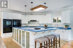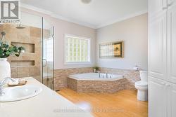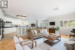Welcome to "The Forest" one of Collingwood's most sought-after neighbourhoods, known for its estate-sized lots, mature trees, and exceptional privacy. Set on a beautifully treed 3/4 acre lot at the end of a quiet cul-de-sac, this raised bungalow offers the perfect blend of recreational lifestyle and refined living. Much bigger than meets the eye with 5 bedrooms and 4 bathrooms and approx. 3923 square feet of finished living space, this spacious home is ideal for families, weekenders, or those looking to downsize without compromise. The open-concept main floor features a bright kitchen, living, and dining area anchored by a cozy wood stove perfect for après-ski gatherings or quiet evenings. Two main-floor bedrooms each have their own ensuite, offering the option of dual primary suites. Main-floor laundry adds everyday convenience.The fully finished lower level includes 3 additional bedrooms, 4th bathroom, and a large rec room offering loads of space for family and guests. Step outside to a generous deck overlooking your private woodland setting ideal for entertaining or unwinding.Enjoy year-round adventure with easy access to the Georgian Trail for walking and cycling, minutes to Blue Mountain and the areas private ski clubs, Georgian Bay waterfront, and several top-tier golf courses. (id:27)