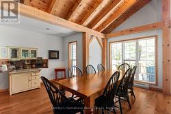 Welcome to your private waterfront escape on stunning Go Home Lake. With 160 feet of shoreline, two large docks, and incredible views over Paradise Bay, this beautifully renovated cottage offers the perfect blend of comfort, style, and adventure. Just a 10-minute boat ride from the marina, the property includes a spacious main cottage with a large addition, soaring vaulted ceilings, and high-end finishes throughout. The open-concept living room features a striking stone fireplace and walkout to a massive deck overlooking the water ideal for relaxing or entertaining. A custom gourmet kitchen with stainless steel appliances flows into the dining room, making hosting a breeze. The primary bedroom includes vaulted ceilings, water views, and direct deck access. Down by the water, there is a dock shed that sits right on the deck to store all of your lakeside lounging gear and water toys. An electric luggage carrier makes bringing supplies up the hill effortless. Out back, you'll find a shed and a separate art/craft studio for creative pursuits. A spacious bunkie provides extra room for family or guests with vaulted ceilings, two bedrooms, a living area, kitchenette, and its own deck. Whether you're soaking in the views, swimming off the dock, or enjoying cozy nights by the fire, this is lakeside living at its best. Accessed by boat only. (id:27)