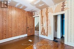 Charming Century Home with Character and Potential. This solid, double-bricked 2.5-storey century home welcomes you with a covered front porch that opens into the charm of yesteryear. Original woodwork, doors, trim, stained glass, French doors, and an oak staircase highlight the timeless craftsmanship throughout. The main level features a formal living room with French doors, a formal dining room, an eat-in kitchen with appliances, a bright sunroom with walkout to the large backyard and deck, plus a convenient main-floor laundry combined with a 2-piece bath. Upstairs you'll find three bedrooms-each with closets plus a 4-piece bathroom. Need more space? The unfinished attic is a wide-open opportunity, ready to be transformed into a teen retreat, family room, studio, or anything your imagination inspires. Some updates have already been started, including wallpaper removal and original floor refinishing. Additional improvements include a new 100-amp breaker panel, updated wiring, some new windows and exterior doors, and a gas furnace. The generous backyard offers ample room for gardens, children's play, and outdoor relaxation. With a little creativity and a passion for historic homes, this property can become your dream space. Located in the growing village of Markdale, you're within walking distance of the school, hospital, shopping, park, and golf course. Owen Sound is just 30 minutes away and Shelburne is 40 minutes. Close to Beaver Valley, Lake Eugenia, and the Bruce Trail, the home offers easy access to exceptional recreational amenities. Move-in ready while you envision and plan your transformation. (id:7525)