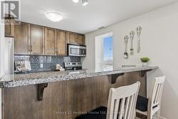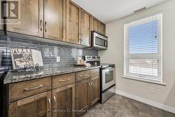 Welcome to this bright and spacious top-floor corner unit condominium located in the desirable west end of Guelph. This well-maintained suite features one bedroom plus a large den, perfect for a home office or guest space. Enjoy an updated kitchen with granite countertops, modern flooring and a freshly painted interior. Step outside to a beautiful balcony terrace offering a great space to relax and unwind. The unit includes one parking space and a locker, with the option for additional parking available. Ideally situated within walking distance to shopping, banking, and everyday amenities, with near by public transit and easy access to the highway, this is convenient condo living at its best. (id:27)