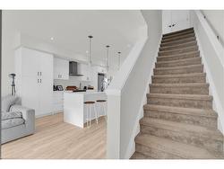 Experience exceptional living in this modern, luxury stacked townhouse in Guelph's highly desirable South End, offering over 1,541 sq. ft. of contemporary comfort and thoughtfully designed living space. The open-concept main floor features an upgraded eat-in kitchen with premium stainless steel appliances, abundant cabinetry, an expansive island, and a brand-new water softener, complemented by a bright living and dining area, a convenient 2-piece bathroom, and direct access to a large private balcony ideal for relaxation or entertaining. The upper level includes three sizeable bedrooms, a full 4-piece bathroom, and a luxurious primary suite complete with a walk-in closet and its own 4-piece ensuite, as well as a new stacked washer and dryer for added convenience. Perfectly located steps from grocery stores, schools, banks, LCBO, restaurants, a movie theatre, and on a direct bus route to the University of Guelph, this home offers unmatched walkable convenience. One parking space is included, with the option to rent an additional spot if required, making this an exceptional opportunity for modern, low-maintenance living in one of Guelph's most sought-after neighbourhoods.