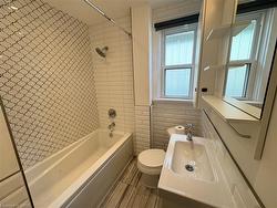 You’ll be proud to come home to this beautifully updated 4-bedroom home, offering style, comfort, and plenty of space for your family.Start your day on the charming front porch, with room for outdoor furniture where you can enjoy a morning coffee or unwind in the evening. Step inside and be greeted by elegant black-and-white mosaic tile that sets the tone for the rest of the home.The spacious living area features a cozy gas fireplace and large windows that flood the space with natural light. It flows seamlessly into the dining area, perfect for family meals and gatherings. The modern kitchen boasts gorgeous stone countertops, a functional island with extra storage, and stainless steel appliances including a dishwasher and microwave. Off the kitchen, you’ll find a convenient mudroom with wall-mounted storage and direct access to the backyard.Enjoy summer evenings on your deck overlooking the expansive backyard, ideal for entertaining or simply relaxing outdoors.Upstairs, you’ll find four be drooms. Two are generously sized, while the other two are perfect for a home office, nursery, toddler room, or playroom. The 4-piece bathroom is beautifully finished with designer tiles, a modern vanity, and a tub/shower combo.The lower level includes in-suite laundry (washer and dryer) along with plenty of storage space. Parking is located at the back of the property, with easy access through the mudroom—keeping coats, shoes, and everyday clutter neatly out of the way of the welcoming front entrance.Available now $2800 plus utitlies, includes parking