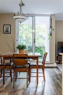 Welcome home to this bright, spacious one-bedroom condo, all set for you to move in! The open-concept layout is thoughtfully renovated, featuring ceramic and high-quality laminate flooring for a modern feel. The kitchen boasts updated cabinetry, stainless steel appliances, granite countertops, and a stylish patterned tile backsplash, complete with a breakfast bar for easy dining. The dining area flows seamlessly to a sunny balcony overlooking a wooded trail and scenic escarpment views. The bathroom has been updated with a sleek vanity and fully tiled bath and shower. The bedroom offers plenty of natural light through a floor-to-ceiling window and includes a roomy closet. In-suite laundry hookups add extra convenience. Enjoy a pet-friendly building with low fees that include heat, water, and more, plus your own parking space and storage locker. With walking trails, parks, and unbeatable proximity to shopping, transit, and highway access, this is an ideal spot for first-time buyers or downsizers alike!