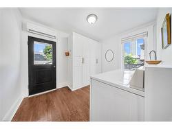 Nestled on a family-friendly street just steps from beautiful Victoria Park and vibrant downtown Kitchener, this charming 4-bedroom home strikes the perfect balance between character and modern convenience. The welcoming exterior hints at the thoughtful updates and well-maintained features you'll discover inside. Step through the front door and you'll immediately notice the gorgeous oak strip hardwood floors that flow throughout, complemented by elegant crown moulding and beautiful wide wood trim that adds a touch of sophistication. The main level offers comfortable living spaces, while a convenient half-bath serves daily needs. Venture upstairs to find three generous bedrooms, including a spacious primary bedroom. The fourth bedroom has been thoughtfully converted into an upper-level laundry room – though it could easily return to bedroom duty if needed. Check out the recently renovated 4-piece bathroom that creates a spa-like retreat, perfect for unwinding after busy days. Don't miss the unspoiled loft space, ideal for a children's playroom, home office, or additional living area – let your imagination run wild! Practical features include separate side and back entrances, plus laundry hookups in the basement for added flexibility.?The real showstopper? A massive 749 sqft detached garage measuring 32ft 8in X 23 ft and housing a self-contained studio complete with its own furnace (2022) and air conditioning (2025). Whether you're an artist, entrepreneur, or just need extra space, this versatile outbuilding delivers endless possibilities. Some of the many updates include: windows, eaves & siding, driveway, heat pumps, boiler and softener. Reach out for the full list. This home is truly beautiful - book your showing today.