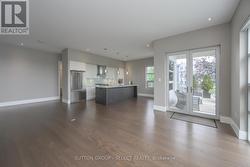 Experience 2,150 sq. ft. of elevated living-1,700 sq. ft. indoors plus a 450 sq. ft. wrap-around covered terrace-offered at an exceptional $599,900. This penthouse-style residence delivers soaring 10' ceilings, expansive window walls, and sweeping city views that create a sense of scale and serenity rarely found in North London. This is the art of right-sizing. Set within an executive four-storey boutique building on a quiet residential cul-de-sac, the setting feels more like a private enclave than a traditional apartment-style condo. Minutes from University Hospital, Western, Masonville, and Medway Valley's trails, the location offers both convenience and calm. Inside, the great room is warm and inviting, with a sleek gas fireplace and in-floor perimeter heating. The space flows to the terrace-your outdoor retreat for morning coffee, evenings under the stars, or watching fireworks over the city. The kitchen features crisp white shaker cabinetry, a contrasting island, quartz counters, and a premium dual-fuel range-ideal for those who love to cook and entertain. Both bedrooms are truly private suites, each with a walk-in closet and an upgraded ensuite with heated floors, creating an exceptional layout for hosting guests, supporting multi-generational living, or carving out a peaceful work-from-home space. Security and convenience elevate daily living: owned underground parking provides peace of mind, and an owned storage locker adds valuable flexibility not available to every unit. Additional features include hardwood throughout, independent HVAC controls, in-suite surveillance visibility, a gas BBQ line on the terrace, and immediate possession. Generous proportions, luminous interiors, and a terrace made for golden hours and late-night conversations. A residence that feels effortlessly luxurious-and quietly unforgettable. (id:27)