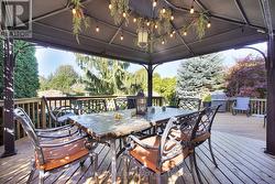 Set on nearly 0.4 acres-the second-largest lot in the prestigious Summerside community-this exceptional residence offers unmatched privacy, tranquil surroundings, and professional landscaping. The property boasts one of the area's most stunning pools, creating a private outdoor sanctuary. Located on a spacious cul-de-sac, this meticulously maintained home combines elegant design with expansive outdoor living, ideal for those seeking both luxury and seclusion. Spanning over 2,200sqft, the thoughtfully designed split-level layout seamlessly blends modern elegance with practicality. Upon entry, a grand tiled foyer with stylish pillars, soaring vaulted ceilings, and ambient pot lighting flows into a formal dining area. The chef's kitchen features rich cherry cabinetry, ceramic tile flooring, a matching backsplash, and high-end stainless steel appliances with a gas stove-perfect for culinary enthusiasts. Ample counterspace and a granite-topped eat-in breakfast bar overlook the sunken family room, which boasts hardwood floors, a cozy gas fireplace, and a walkout to a large wraparound deck-perfect for entertaining. Adjacent to the family room is a spacious office or fourth bedroom, conveniently situated beside a full bathroom with a walk-in shower. Upstairs, three generous bedrooms include a luxurious master suite with a walk-in closet and a cheater ensuite with double sinks. The third-floor bathroom offers a shower/tub combo with tiled floors and a dual vanity. Outside, enjoy your private backyard retreat featuring a saltwater pool, hot tub, and a fully equipped pool house with a toilet and shower-ideal for relaxing or hosting gatherings. Additional amenities include a fire pit + 2 additional utility sheds. Radiating warmth and harmony, this home is a perfect sanctuary-where love and laughter thrive. Whether sipping coffee poolside, sharing meals by the fire, or relaxing under the stars every moment here reminds you that true luxury is feeling at peace where you are! (id:27)