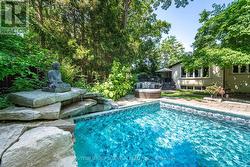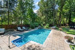 Set on a quiet street in the prestigious White Oaks of Jalna enclave in Lorne Park, this impeccably maintained 4-Level side split is a rare offering. With 4 bedrooms and an open concept layout that flows seamlessly between levels, this home is designed for comfortable family living, stylish entertaining, and even multi-generational flexibility. The main level sets the tone with a bright living room featuring a gas fireplace and expansive windows, a formal dining area, and a true entertainer's kitchen. Anchored by an oversized island with seating and a prep sink, this chef-worthy space includes high-end stainless steel appliances, stone countertops, and abundant custom cabinetry. Whether hosting a crowd or enjoying quiet mornings, the layout invites connection and flow. The lower level offers a welcoming family room with a natural wood burning fireplace and walkout to private patio, two bedrooms, and a luxurious bathroom with glass shower and soaker tub - ideal for guests or in-laws. Upstairs, the primary suite is a true retreat with a spa-inspired ensuite featuring heated floors, steam shower and his and hers vanities, plus a custom walk-in closet with boutique level storage. A second bedroom offers versatility for a home office or nursery. The finished basement features a walkout to the backyard, ample space for a gym, play zone, or hobby room, and a custom movie theatre with a gas fireplace that's a true showpiece - perfect for movie marathons, game nights, or streaming your favourite series in comfort and style. the private backyard is a resort-style escape with low-maintenance turf, mature trees, a custom cabana with built-in bar and stone-surround fireplace, sunken hot tub, deck with dining area and a salt water pool. Located in a highly sought after, family-friendly neighbourhood close to top schools, shopping, trails, Clarkson GO, and its just 30 minutes to downtown Toronto. (id:27)
