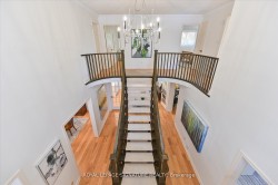 Backing on a meadering creek, soaring magestic trees and nature trails that seamlessly blend nature and urban living, there is something special about this home. Located in an exclusive enclave off coveted Mississauga Road and Sawmill Valley Neighbourhood. Stepping into the foyer, you are greeted by the spectacular imported English Oak staircase and the warm embrace of this beautiful home. From the luxurious Hickory floors on the main and second floor, to the soaring ceilings, and beautiful chandelier, the attention to detail in this home is surpassed by few others. The main floor highlights versatility in living spaces. Hosting gatherings, enjoying family time, and work from home. The spacious main floor office can be adapted to a bedroom as the main floor also boasts a 4 piece full bath, and laundry with towel warmer .Step out to the elevated deck to bbq, off the kitchen or enjoy a cup of coffee and overlook the majestic trees , the serene meditation rock and hear the water gurgling along the creek backing onto to the property. The second floor boasts 3 large Bedrooms, a renovated main bath and an exceptional Primary suite with a fully renovated dressing area, 5 piece bath, walk in closet, sitting area, and studio ensuite overlooking the main floor. This ensuite space can be used as a reading area, yoga, office or homework space. The possibilites are yours to imagine and define when you make this home your own. The lower level features a second suite with a 6 piece ensuite again with bidet, walkout to the back garden deck, a play area, and a second 3 piece bath off the recreation room.4 Bedrooms plus full guest suite, main floor office, 4000 sq ft of living space, immaculately maintained home, backing onto Sawmill Creek and Trail system. Roof (7 years), 200 amp service, HVAC 2025 Furnace, Gentek Regency Windows 2013 (lifetime warranty), New eaves and downspouts, Features too many to mention. Rarely offered home of this quality.